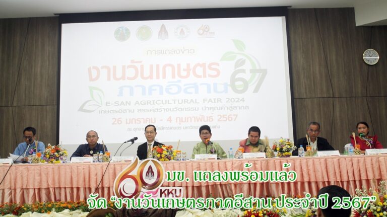 มข. แถลงพร้อมแล้วจัด “งานวันเกษตรภาคอีสาน ประจำปี 2567” ลั่นคนจะหลั่งไหลมาเที่ยวชมงานมากว่า5แสนคนคาดเงินสะพัดไม่ต่ำกว่า 600ล้านบาท