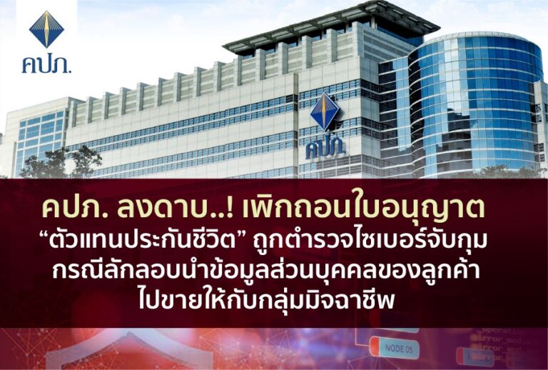 คปภ. ลงดาบ..! เพิกถอนใบอนุญาต “ตัวแทนประกันชีวิต” ถูกตำรวจไซเบอร์จับกุม กรณีลักลอบนำข้อมูลส่วนบุคคลของลูกค้าไปขายให้กับกลุ่มมิจฉาชีพ