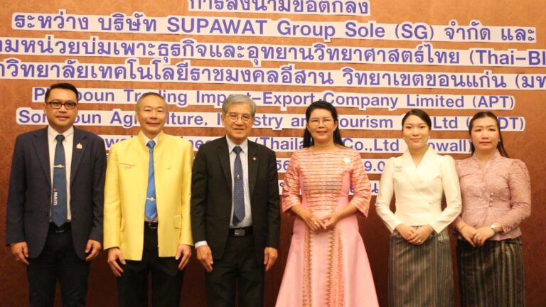 เมื่อเวลา 13.30 น.วันที่ 10 ส.ค. 2567 ที่โรงแรมโฆษะ จ.ขอนแก่น รศ.ดร. กิตติชัย ไตรรัตนศิริชัย นายกสมาคมหน่วยบ่มเพาะธุรกิจและอุทยานวิทยาศาสตร์ไทย หรือ Thai-BISPA เป็นประธานพิธีลงนามข้อตกลงระหว่าง บริษัท SUPAWAT Group Sole (SG) จำกัด นำโดย กับสมาคมหน่วยบ่มเพาะธุรกิจและอุทยานวิทยาศาสตร์ไทย (Thai-BISPA),มหาวิทยาลัยเทคโนโลยีราชมงคลอีสาน วิทยาเขตขอนแก่น,Phaiboun Trading Import-Export Company Limited (APT