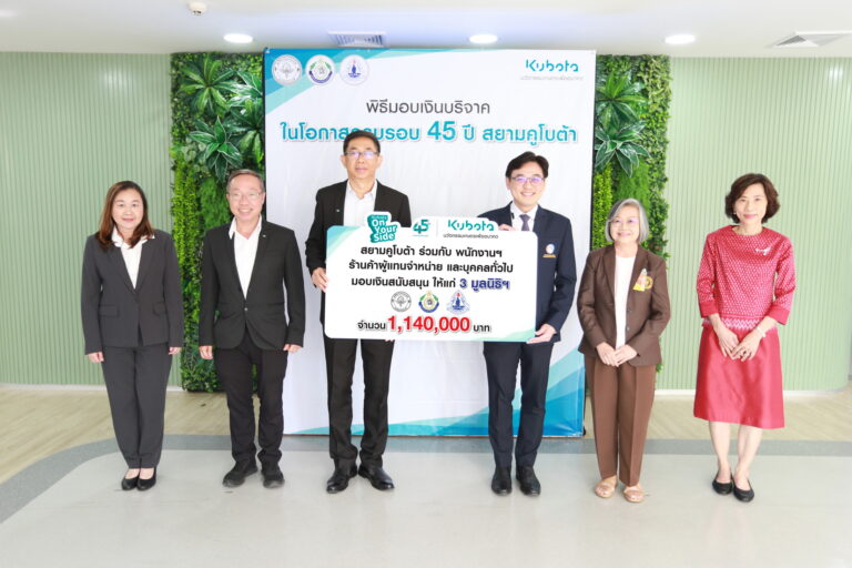 บริษัทสยามคูโบต้าคอร์ปอเรชั่น จำกัดนำโดยนายจูนจิ โอตะ กรรมการผู้จัดการใหญ่(ที่3จากซ้าย)นางวราภรณ์ โอสถาพันธุ์(ที่ 2 จากซ้าย)กรรมการรองผู้จัดการใหญ่อาวุโส และนายพิษณุ มิลินทานุช ผู้ช่วยกรรมการผู้จัดการใหญ่ ผู้จัดการทั่วไป สายงานขาย การตลาดและบริการ(ที่ 2 จากขวา) แถลงผลประกอบการปี2566ปิดยอดขายที่58,000ล้านบาท ตั้งยอดขายเป้าปี2567ที่60,000ล้านบาท ตอกย้ำความเป็นผู้นำตลาดเครื่องจักรกลการเกษตรในอาเซียน