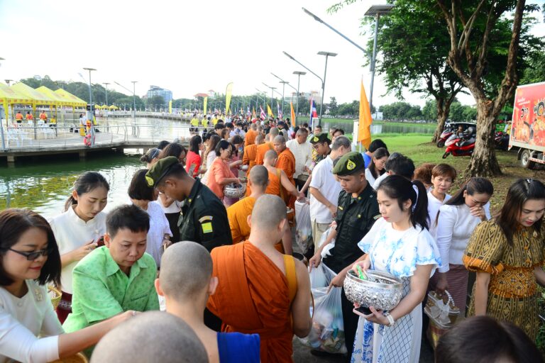 ชาวขอนแก่นร่วมพิธีทำบุญตักบาตรเทโวเนื่องในงานประเพณีออกพรรษา ลอยประทีปบูชา พุทธกตัญญู ประจำปี 2568