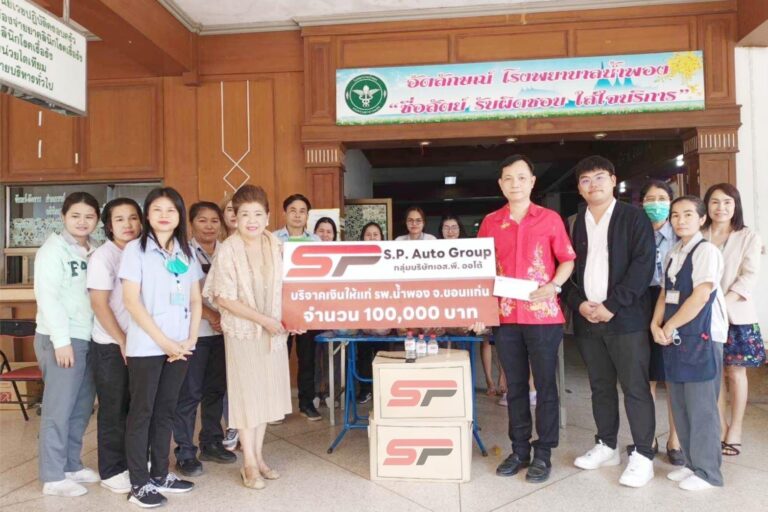 เมื่อเร็วๆนี้...คุณปราณี ธีรภานุ ประธานกรรมการกลุ่มบริษัท เอส.พี. ออโต้ (S.P. Auto Group) นำคณะผู้บริหารและเจ้าหน้าที่โรงงานเอส.พี. ออโต้ โปรดักส์ อ.น้ำพอง จ.ขอนแก่น บริจาคเงิน จำนวน 100,000 บาท ให้แก่โรงพยาบาลน้ำพอง จังหวัดขอนแก่นและบริจาคเงิน จำนวน 100,000 บาท ให้แก่โรงพยาบาลโกสุมพิสัย จังหวัดมหาสารคาม เพื่อสนับสนุนเป็นงบประมาณในการจัดหาครุภัณฑ์ทางการแพทย์ที่จำเป็นต้องใช้ในการดูแลรักษาผู้ป่วย สา