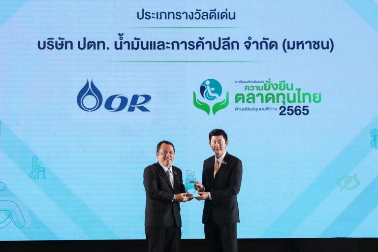 OR รับรางวัล องค์กรต้นแบบความยั่งยืนในตลาดทุนไทยด้านสนับสนุนคนพิการ ประเภท “ดีเด่น” ประจำปี 2565 สะท้อนจุดยืนการสนับสนุนและช่วยเหลือกลุ่มคนพิการในสังคม